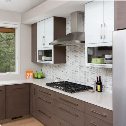 Completed by Gegg Design and Cabinetry in the St. Louis, MO area, this beautiful project was a 2019 Showplace Cabinetry National Award Winner – 2nd Place Contemporary Kitchen Design.