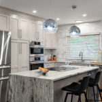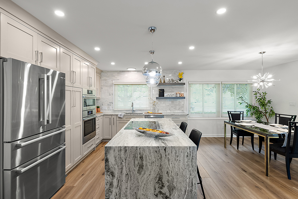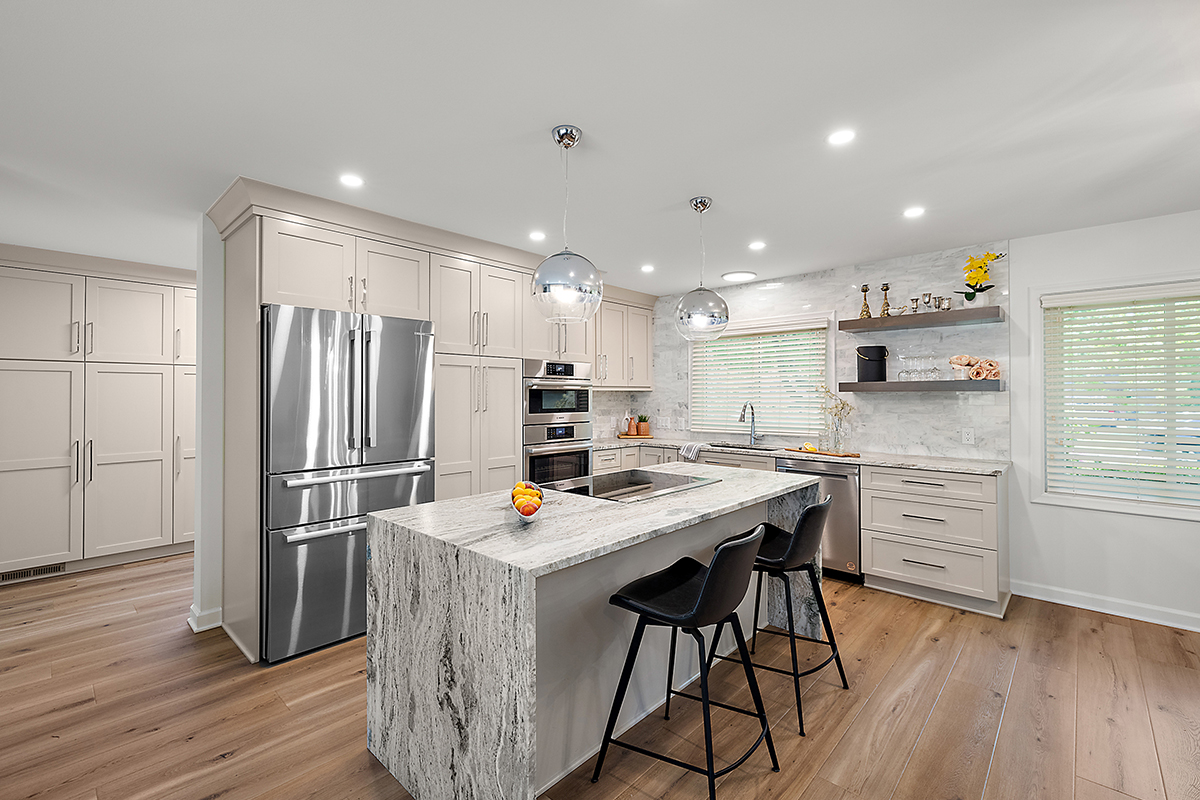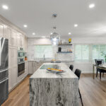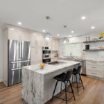 This stunning kitchen transformation was driven by one clear goal: to maximize functional, usable storage while creating a space tailored perfectly to the homeowner’s lifestyle. The entire first-floor footprint was reimagined to support a larger, more open floor plan that now seamlessly connects the kitchen, dining, and sitting areas.