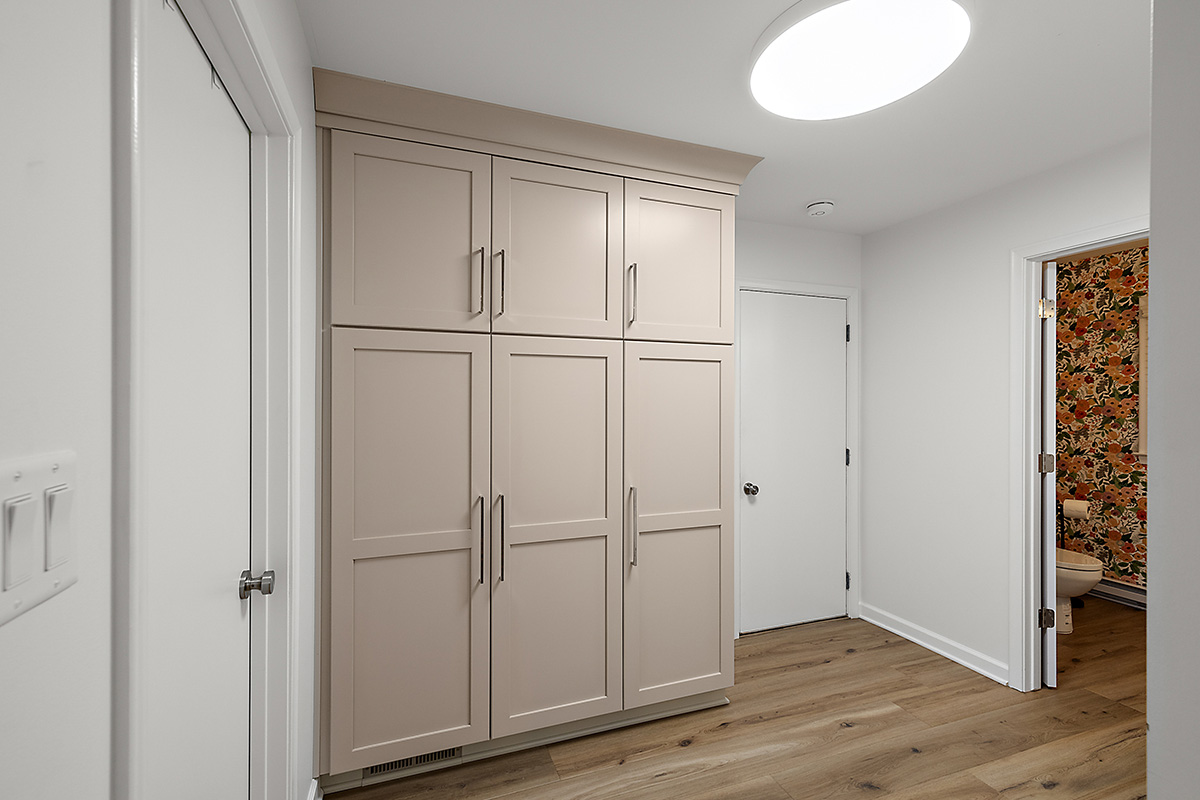 Every detail of the cabinetry was thoughtfully planned, with customized modifications and clever storage solutions to support everything from everyday cooking to effortless entertaining. The result is a kitchen and pantry that work hard behind the scenes while maintaining a beautifully cohesive and inviting aesthetic.