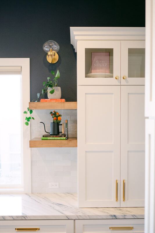 One of the standout features of this project is the thoughtfully designed pantry. More than just a place to stash groceries, it acts as a true extension of the kitchen. Inside, everything has its place — including a convenient mixer lift for the KitchenAid, plus a dedicated coffee and tea bar so morning routines run a little smoother.