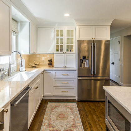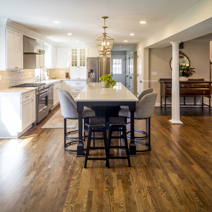 The kitchen had not be renovated in over fifty years, so it was finally time for an upgrade. In addition to the kitchen space, the homeowners also wanted to add storage in the dining room and tie it into the kitchen to give it a more casual feel.