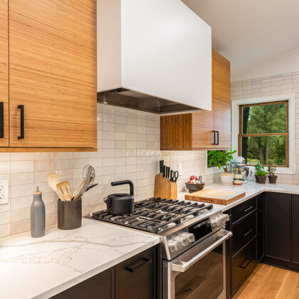 The homeowners love the way the design transformed the feel of the house, making it their own. They also love the mix of materials, especially the natural touches with the bamboo cabinets and concrete lighting accents. The entire kitchen is sleek and modern – just the way they wanted.