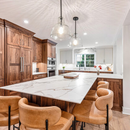 The owners of this home wanted to revive their kitchen’s charm with Showplace Renew to create a space filled with the essence of timeless sophistication and bold, modern elegance. The beautiful door style, finished in Hale Navy paint, radiates class and character, harmonizing seamlessly with the kitchen’s original charm. This refacing project elevates the home effortlessly, proving that a kitchen makeover doesn’t always require a complete overhaul. The homeowners embrace the classic-meets-contemporary allure of Renew and have discovered how their dated kitchen could exude unparalleled class and style once again.