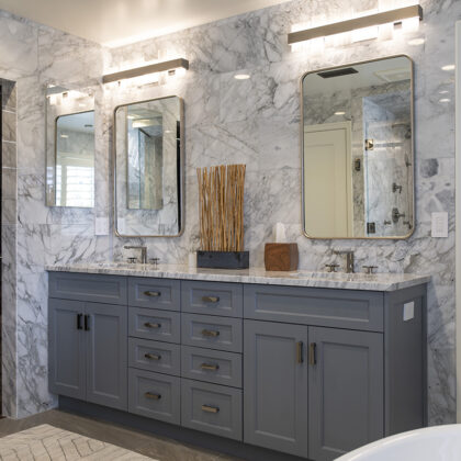 The living areas exude warmth and sophistication, boasting the perfect surroundings for entertaining filled with custom storage solutions that maintain an organized yet stylish ambiance. Step into the bathrooms and indulge in a spa-like experience, where Showplace Cabinetry’s premium materials and finishes accentuate a sense of relaxation.