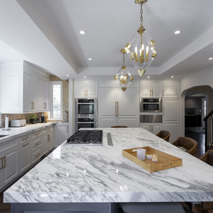 Desiring a haven of peace and elegance—this remodeled home is adorned with the exquisite artistry of Showplace Cabinetry in every room, tailored to suit the family’s eclectic taste. Within these walls, the homeowners discovered tranquility as their vision came to life. The heart of this sanctuary lies in the kitchen, where the seamless blend of modern elements and timeless charm creates an inviting atmosphere for everyone to enjoy.