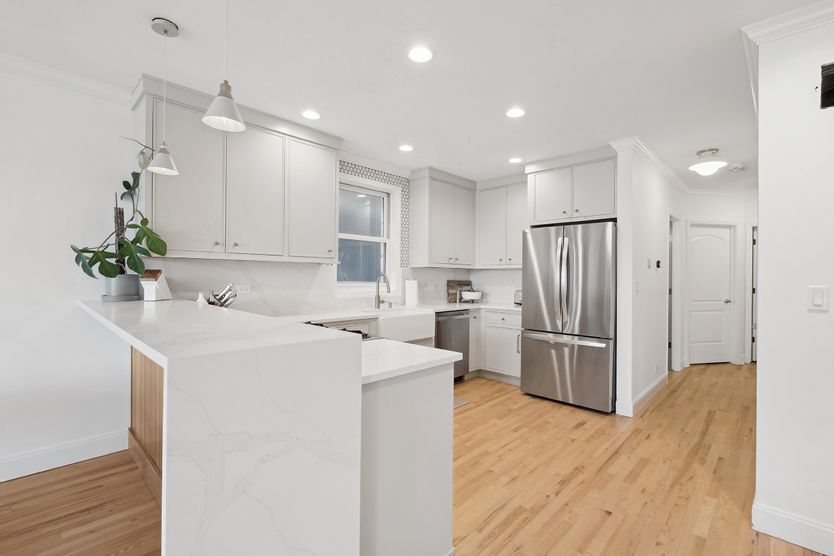 In the heart of Wrigleyville, this couple took on both a condo renovation and wedding planning—all at once. Their goal? A modern space that honors the building’s historic character.