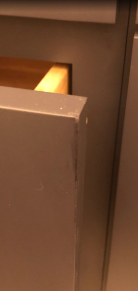 High-use areas like trash pullouts or cabinet edges may show gradual wear over time. Surface damage, like nicks, dents, and scratches should be expected from a home well lived in!